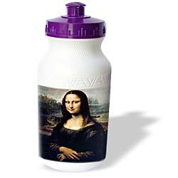 Monalisa Water Bottle is 21oz capacity - 8 inch tall. Sports bottle have become a welcome addition to today's fitness craze. Use sports water bottle while exercising, gardening or watching sports events. Water bottle comes with image on both sides and it is top shelf dishwasher safe.